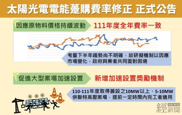 因應原物料漲價,111 年光電躉購費率全年一致